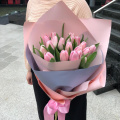 Монобукет из розовых гвоздик в дизайнерской упаковке