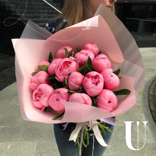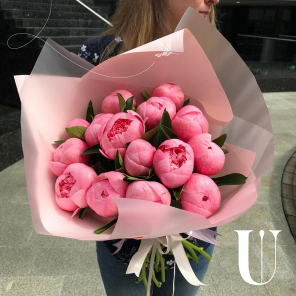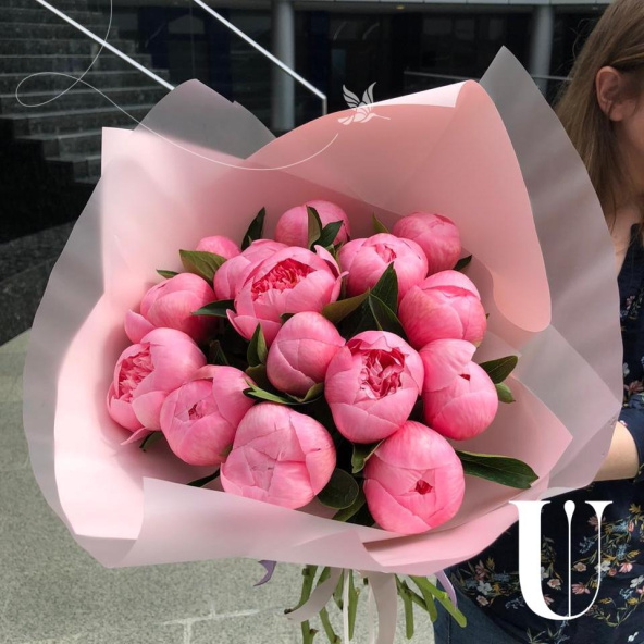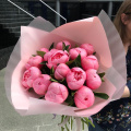 Монобукет из 25 роз сорта Ред Наоми в упаковке фоамиран