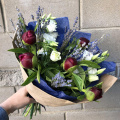 Монобукет из 7 роз сорта Кантри Блюз в дизайнерской упаковке
