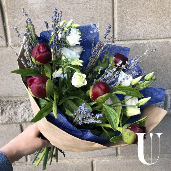 Пион - 5 шт. эустома - 4 шт. лаванда - 350 шт