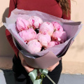 Монобукет из пионовидных роз Кахала и лимониума в нежной упаковке