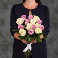 Букет "15 белых и розовых роз"