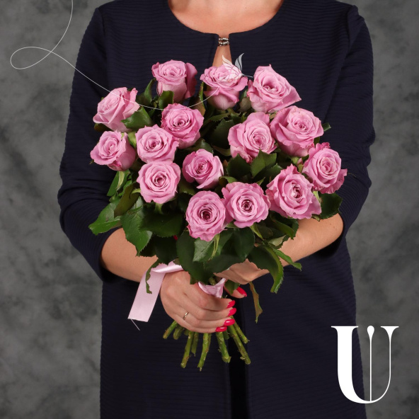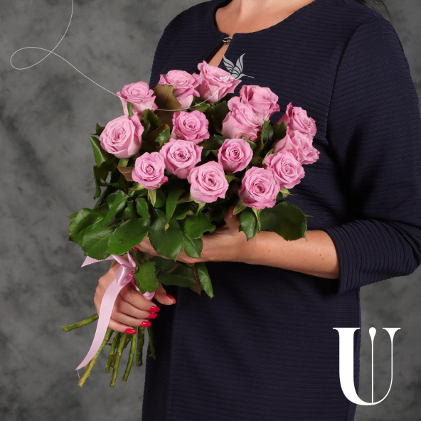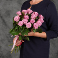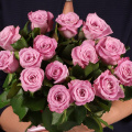 Монобукет из 7 розовых диантусов и эвкалипта в упаковке