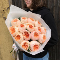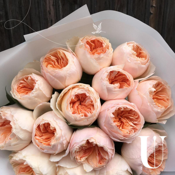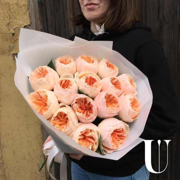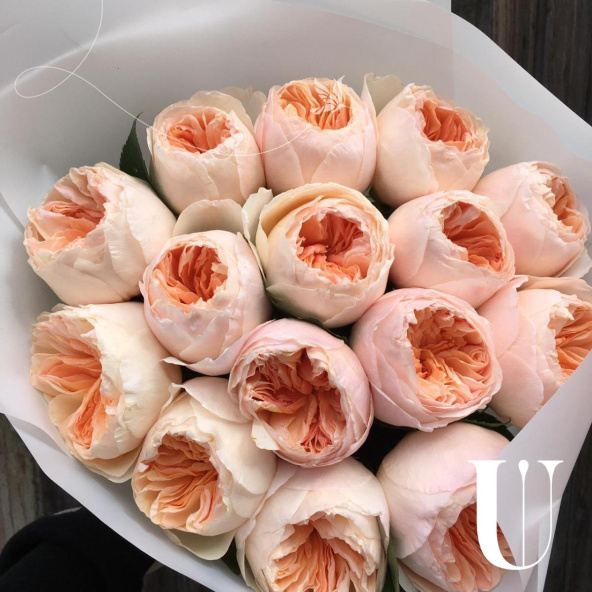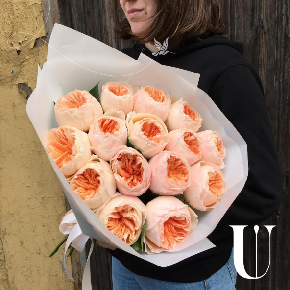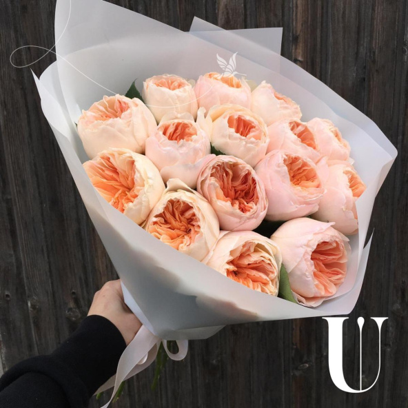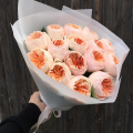Моно букет английских пионовидных роз, в лаконичной упаковке: