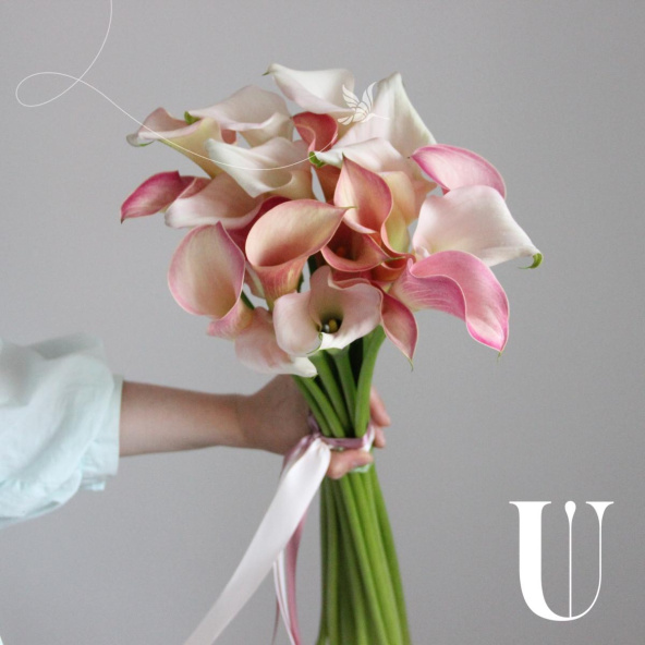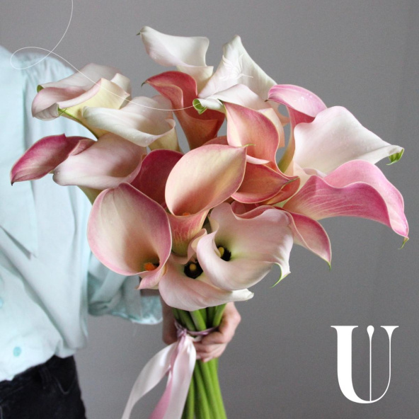 Элегантный моно букет из несравненных калл, 15 штук связанные атласной лентой