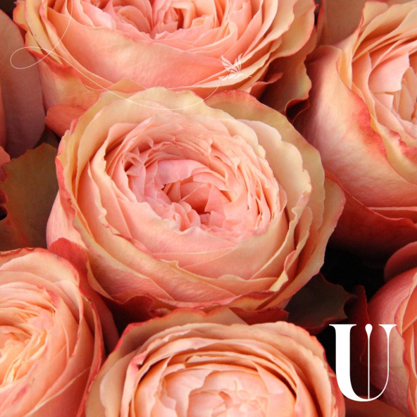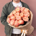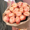 Моно букет из пятнадцати пионовидных роз в хрустящем крафте