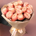 Монобукет из розовых кустовых пионовидных роз в дизайнерской упаковке