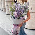 Монобукет из 15 светло-фиолетовых диантусов в упаковке