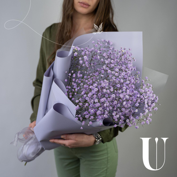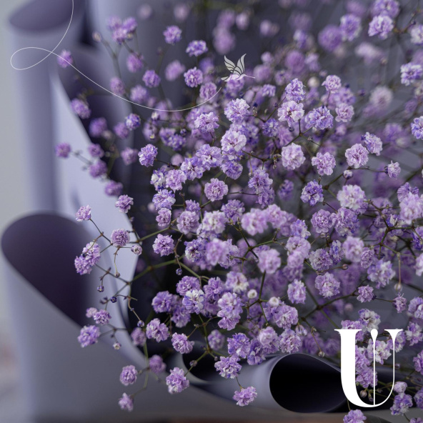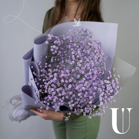 Мини-букет из радужной гипсофилы в голубой упаковке