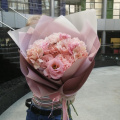 Монобукет из нежных и розовых диантусов в белой упаковке