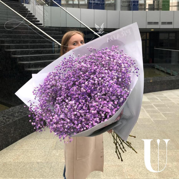 Монобукет из 15 светло-фиолетовых диантусов в упаковке