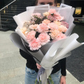 Монобукет из кустовых пионовидных роз Джульетта в упаковке