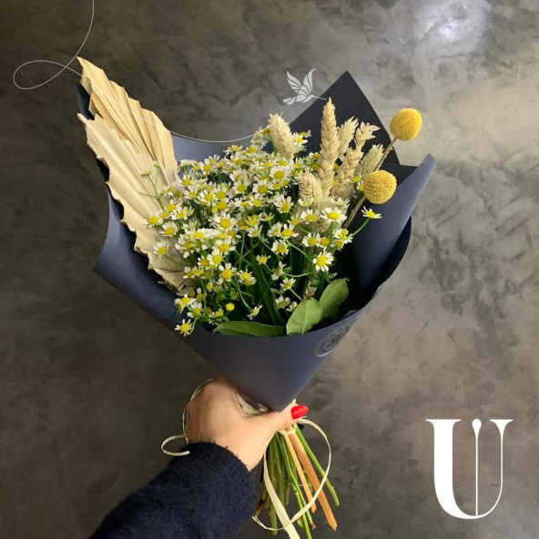 Матрикария - 10,краспедия-3,пшеница-10,сухоцветы - 2,упаковка-3