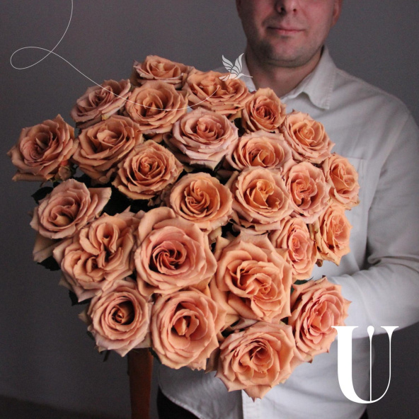 Моно букет из 23 карамельных роз toffe