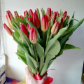 Букет из красных тюльпанов 25 шт., пленка, лента