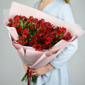 Монобукет из 7 роз сорта Ред Наоми в матовой пленке