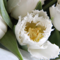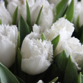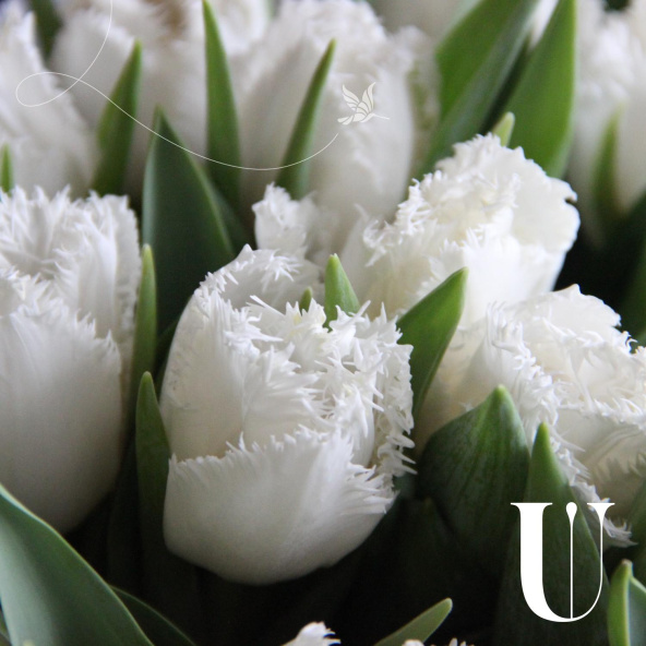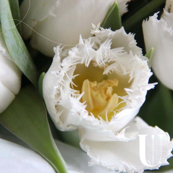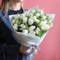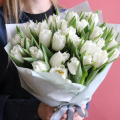 Моно букет из 29 сортовых белых тюльпанов в лаконичной упаковке