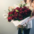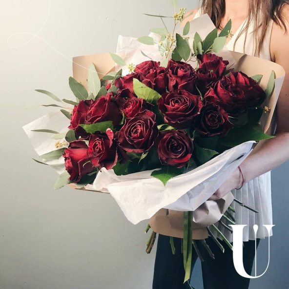 Монобукет из 11 пионовидных роз Кахала в упаковке