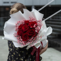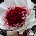 Монобукет из 7 роз сорта Ред Наоми в матовой пленке