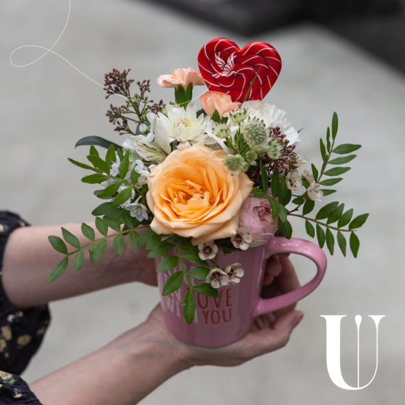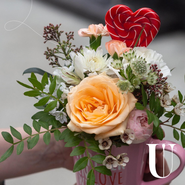 Мини-букет из розового хлопка и эвкалипта в упаковке