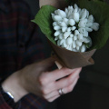 Монобукет из кустовых хризантем сорта Балтика в упаковке
