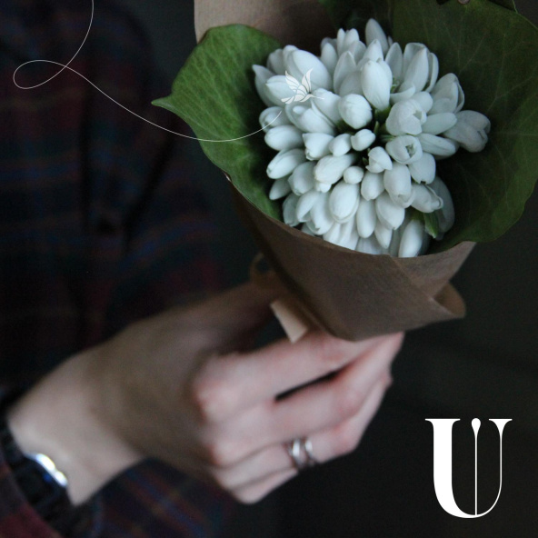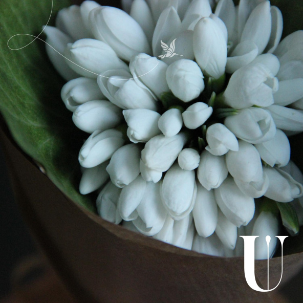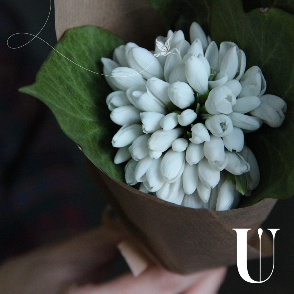 Сказочный букет с нежными весенними подснежниками, 51 штучка в крафте