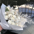 Монобукет из белых ирисов и ромашки в стильной упаковке