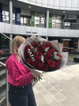 Монобукет из розовых кустовых пионовидных роз в дизайнерской упаковке