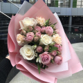 Букет из 5 роз Кантри Блюз в розовой упаковке