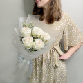 Монобукет из 7 роз сорта Капучино и эвкалипта в дизайнерской упаковке