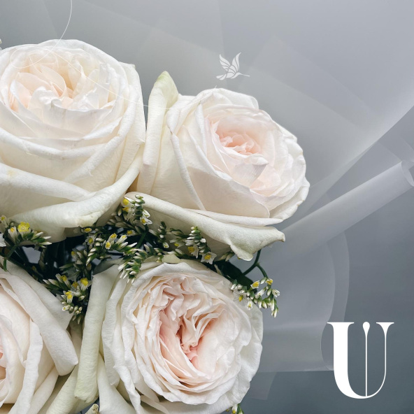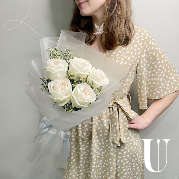Букет из 5 белых роз сорта Аваланж к 1 сентября
