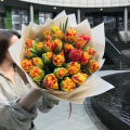 Монобукет из кустовых пионовидных роз Бомбастик в упаковке