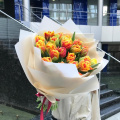 Монобукет из 9 роз сорта Кендаллайт в дизайнерской упаковке