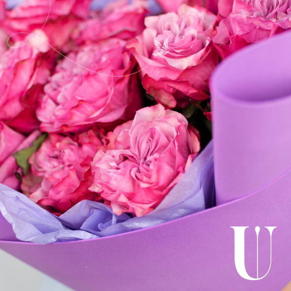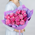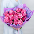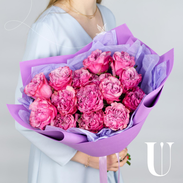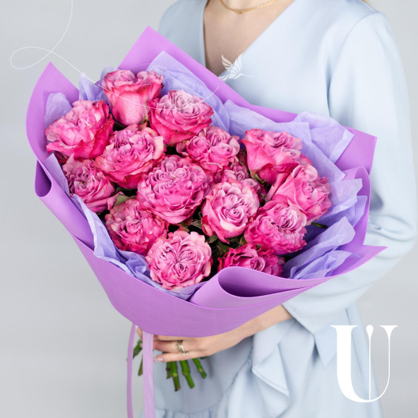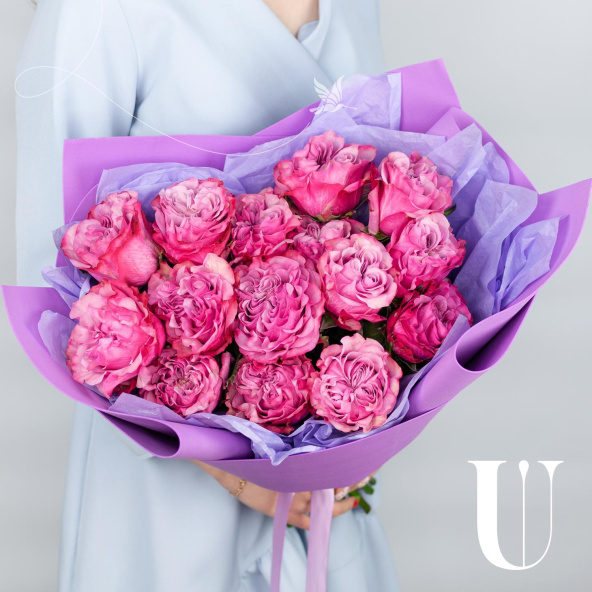 Букет из 21 розовой пионовидной розы Кантри Блюз в стильной упаковке