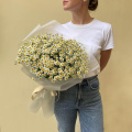 Монобукет из 5 белых хризантем сорта Виена в белой упаковке