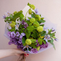 Букет из сиреневых хризантем Сантини в упаковке