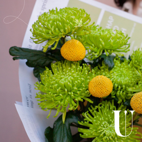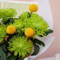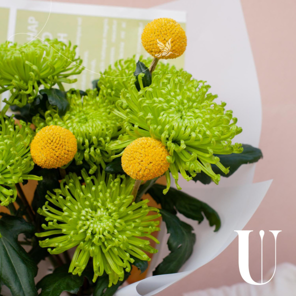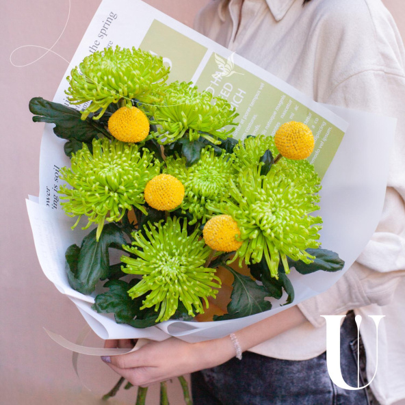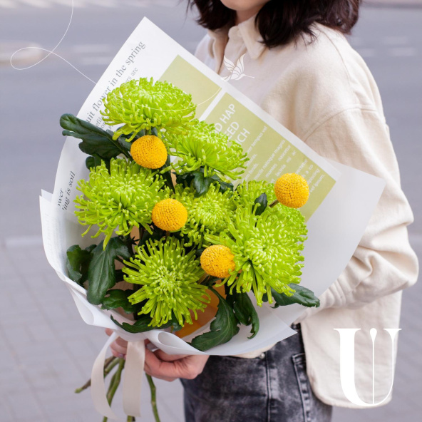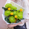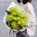 Монобукет из белых кустовых хризантем в дизайнерской упаковке