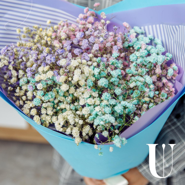 Гипсофила крашеная со стебля: бирюзовая, синяя, сиреневая, желтая и малиновая - 5 шт