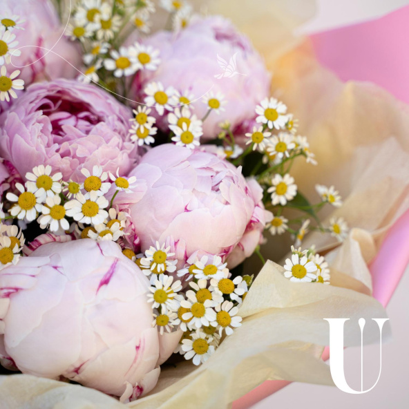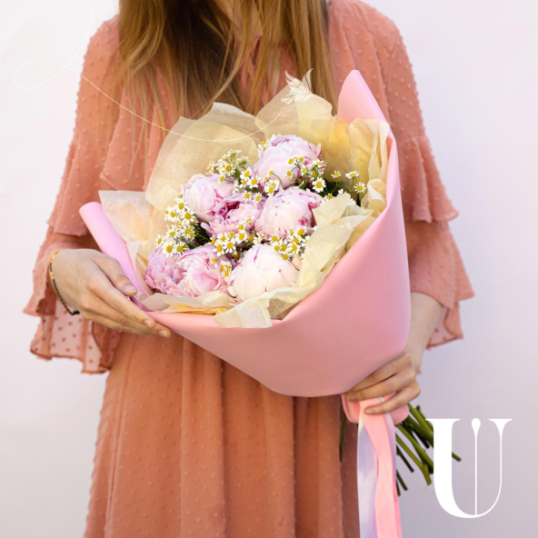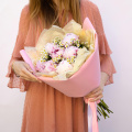 Монобукет из 7 пионовидных роз Джульетта в упаковке