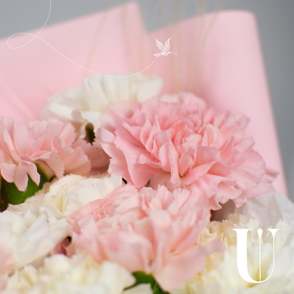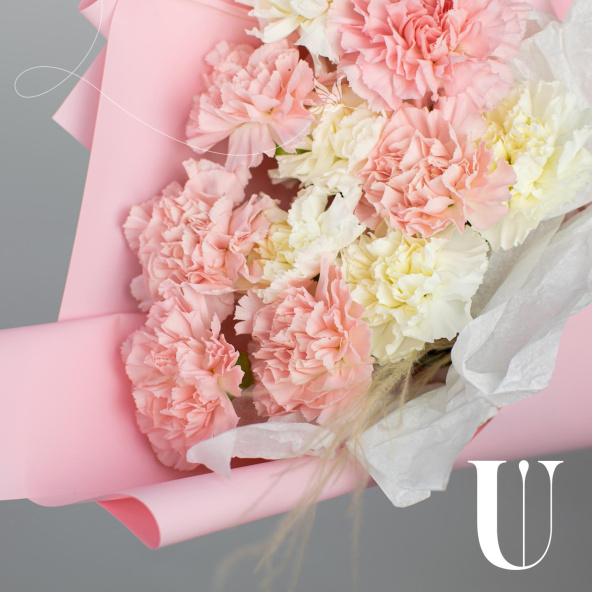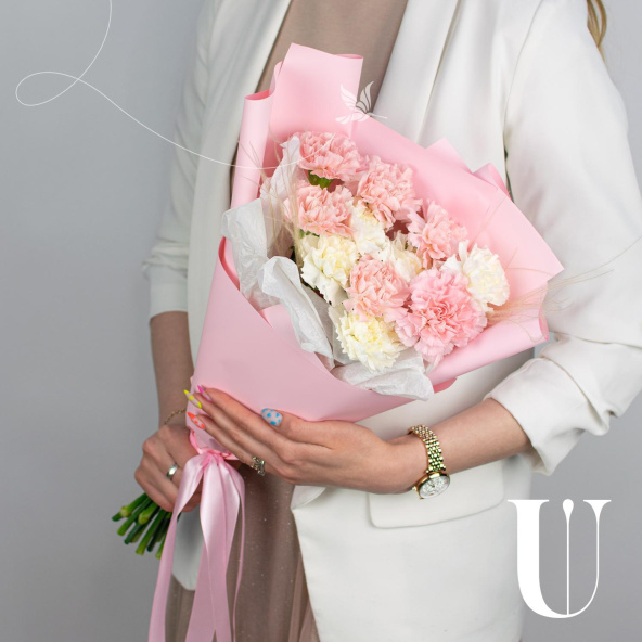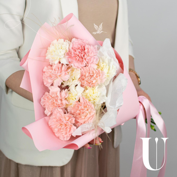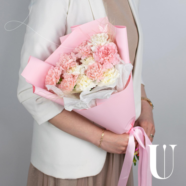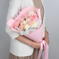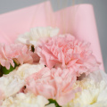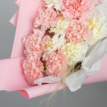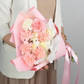 Монобукет из 7 розовых диантусов и эвкалипта в упаковке