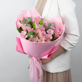 Монобукет из 9 диантусов Мун Аква и эвкалипта в упаковке