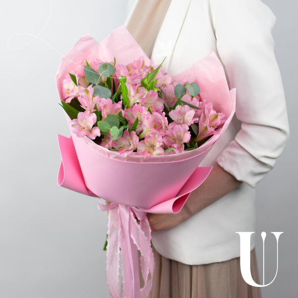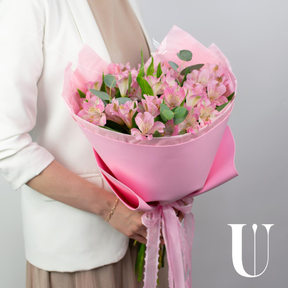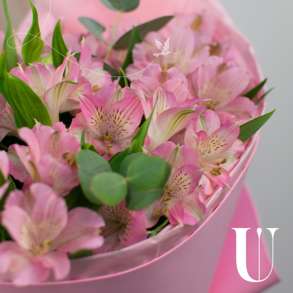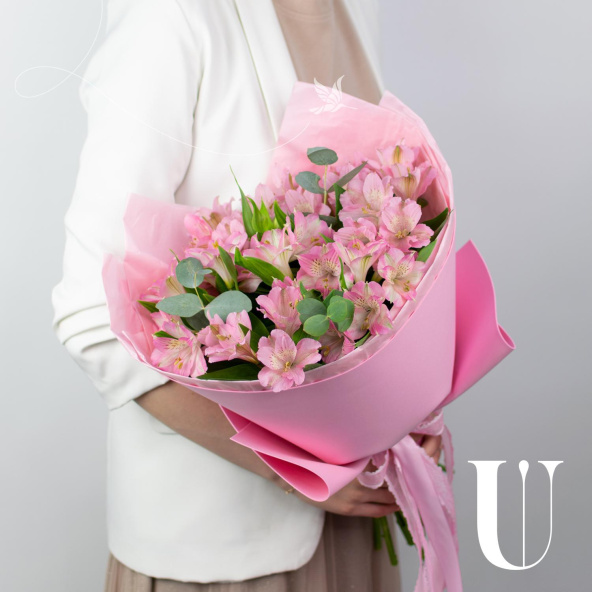 Нежная композиция из пионовидных роз в дизайнерской упаковке