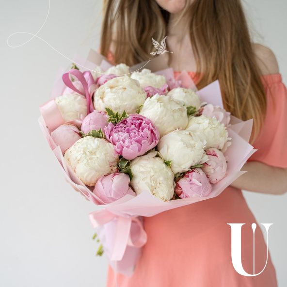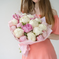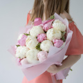 Букет из кустовых пионовидных рогз микс в матовой пленке