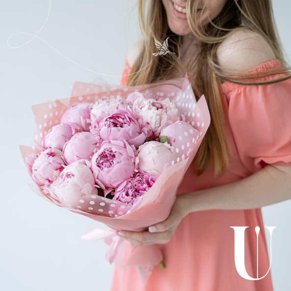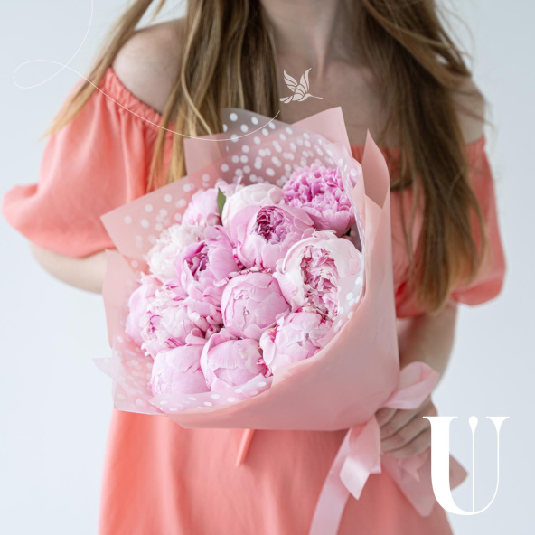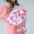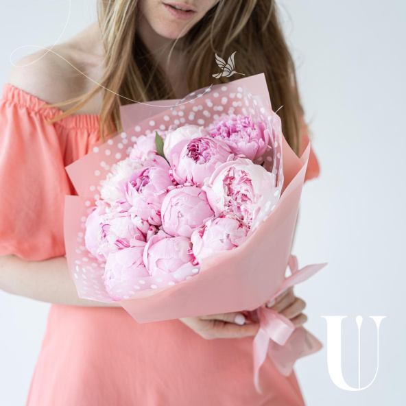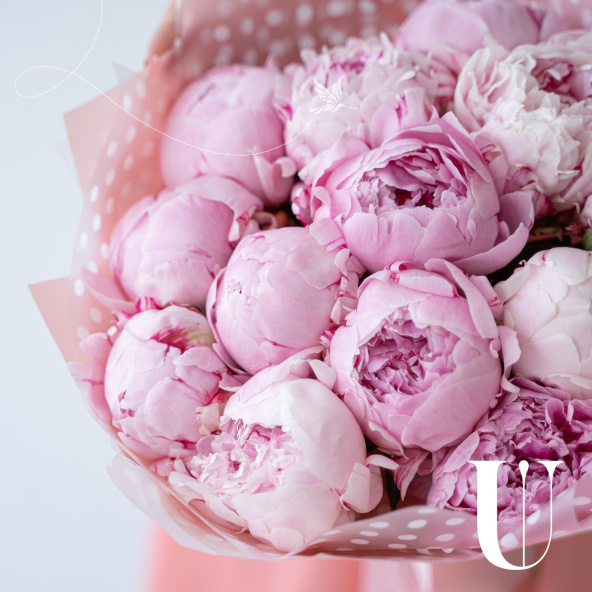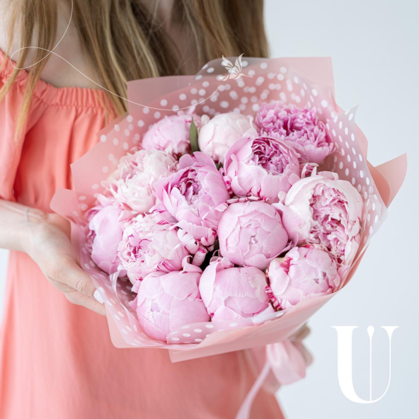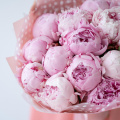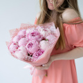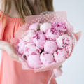 Букет из 15 пионовидных роз сорта Вайт Охара в упаковке