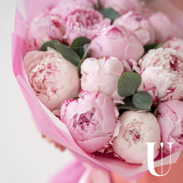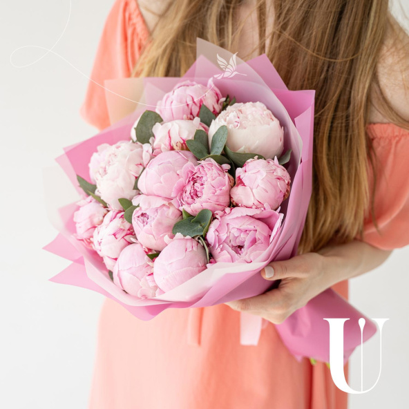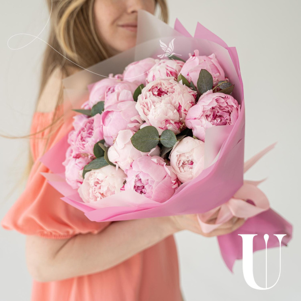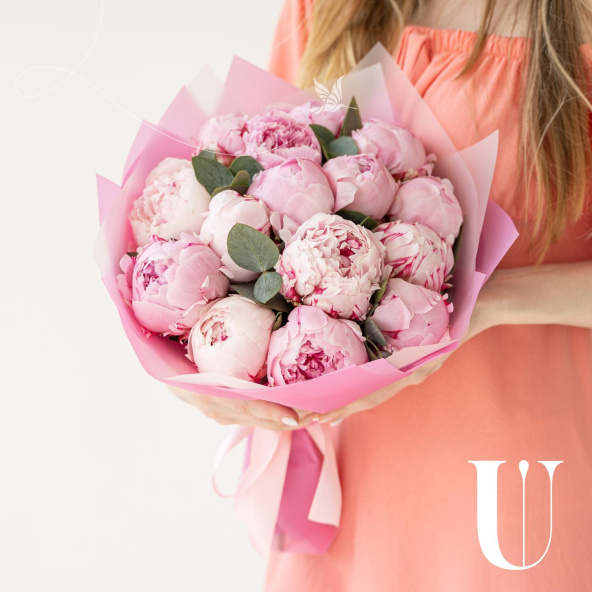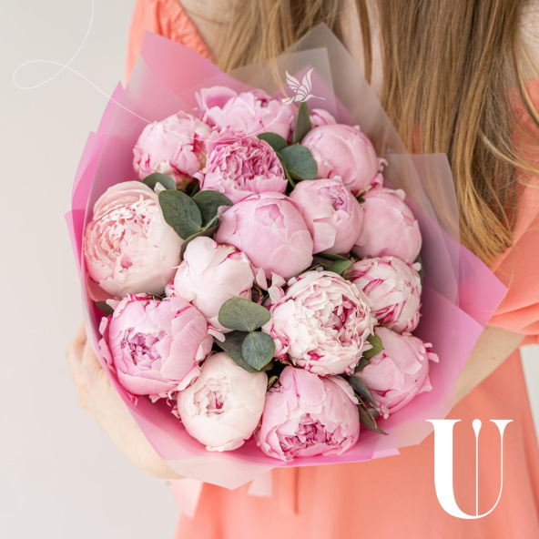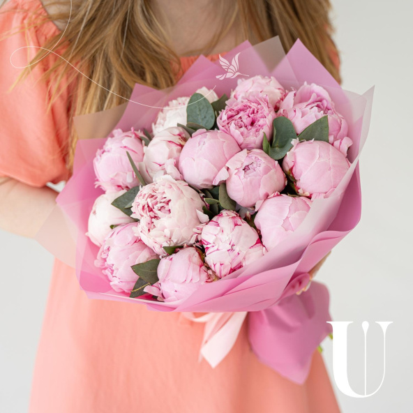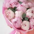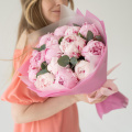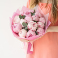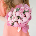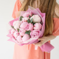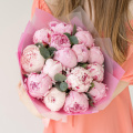 Монобукет из 15 пионовидных роз Кахала в упаковке