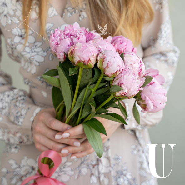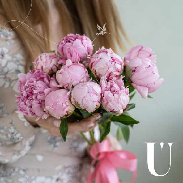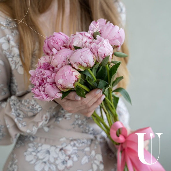 Монобукет из 7 розовых пионовидных роз