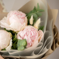 Монобукет из пионовидных роз Кахала и лимониума в нежной упаковке