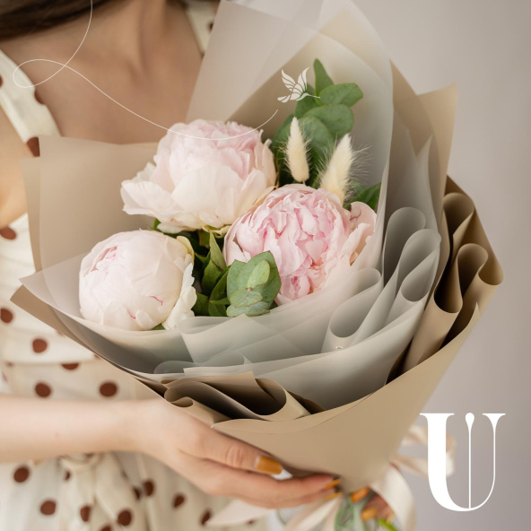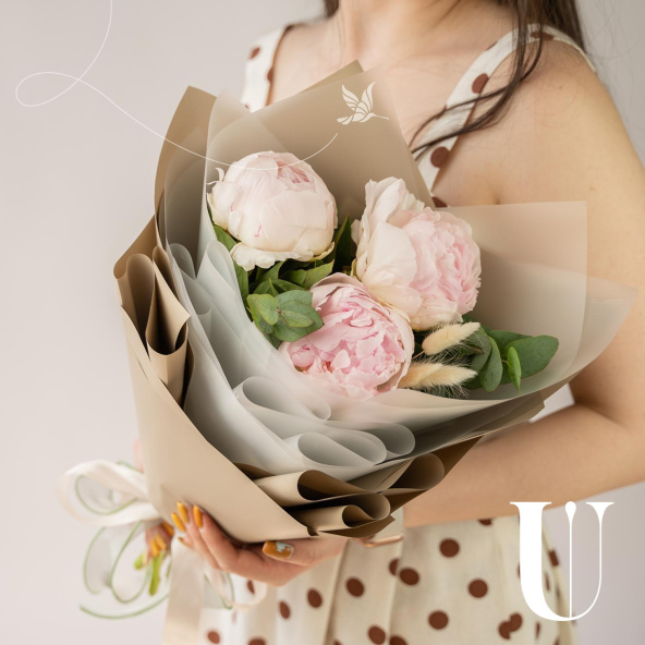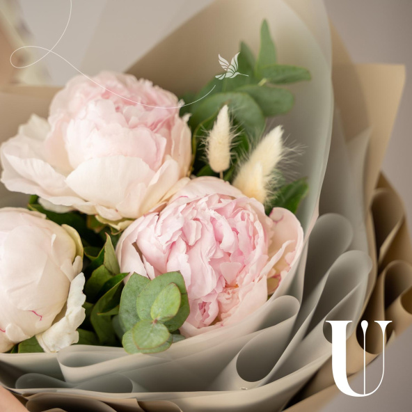 Нежная композиция из пионовидных роз в дизайнерской упаковке