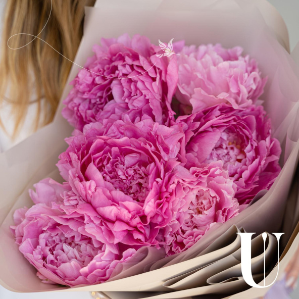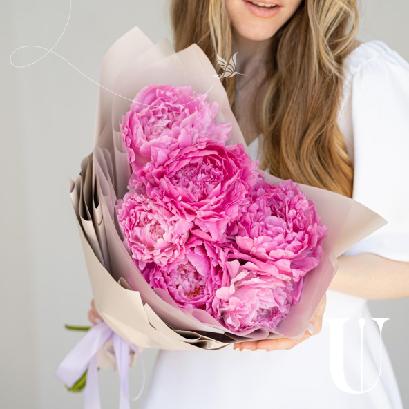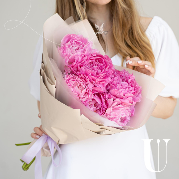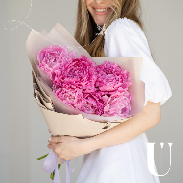 Нежная композиция из пионовидных роз в дизайнерской упаковке