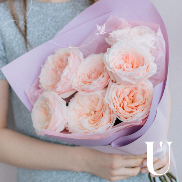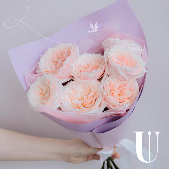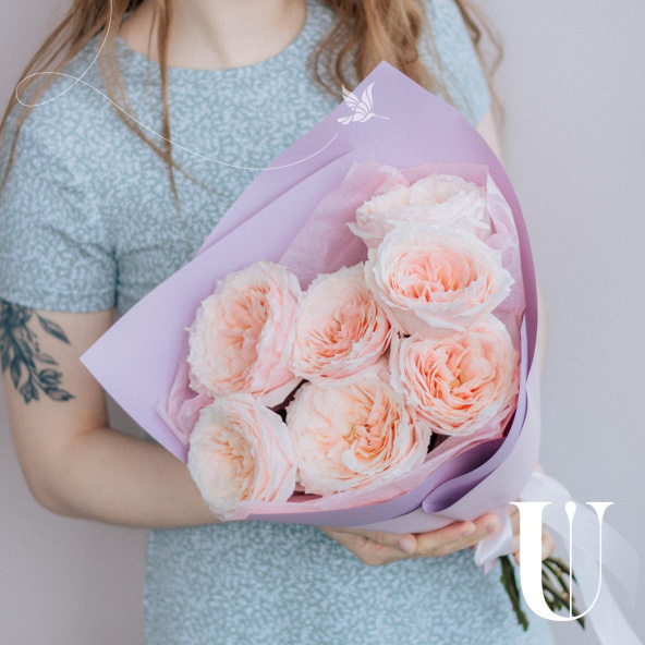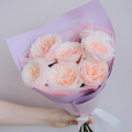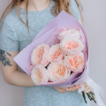 Нежная композиция из пионовидных роз в дизайнерской упаковке